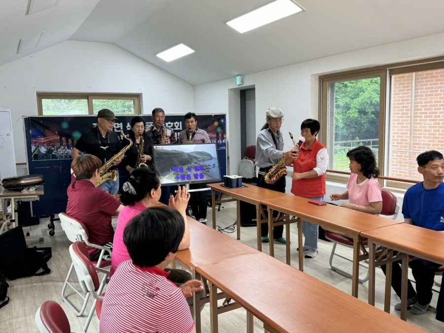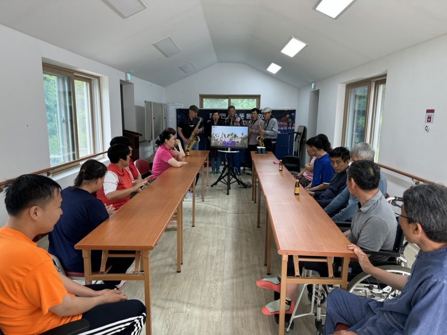 색소폰 연주회를 듣게 되었습니다. 색소폰 악기에 맞춰 노래를 부르는 시간도 있어 입주자 분들이 신나하셨습니다. ^^