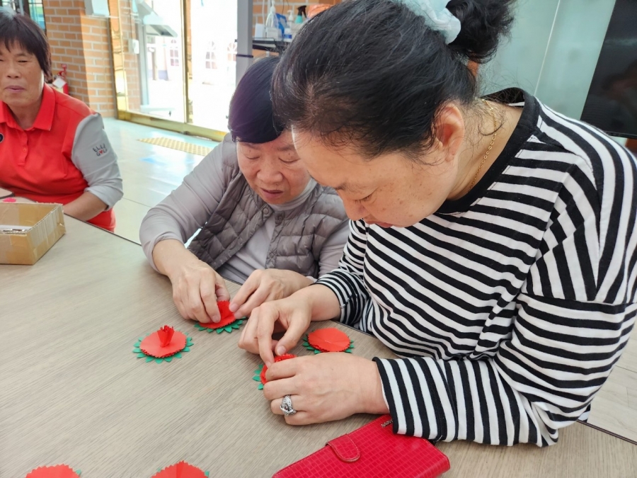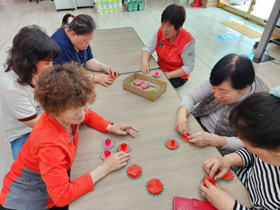 이정순 사모님께서 방문해주셔서 미술 프로그램을 진행해주셨습니다. 오늘은 카네이션을 만들어 보았습니다.