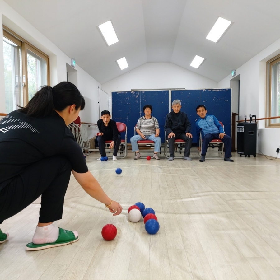체력단련실에서 입주자님들과 보치아게임을 진행하였습니다.