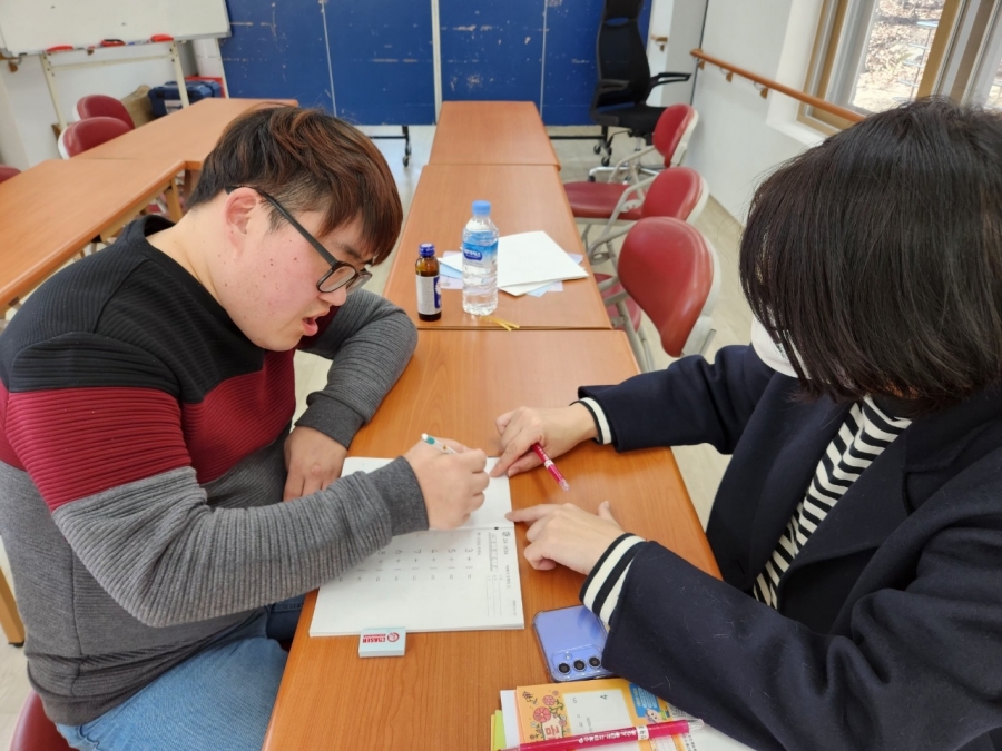 구몬학습 선생님께서 방문하여 입주자님들과 구몬학습지를 푸셨습니다.