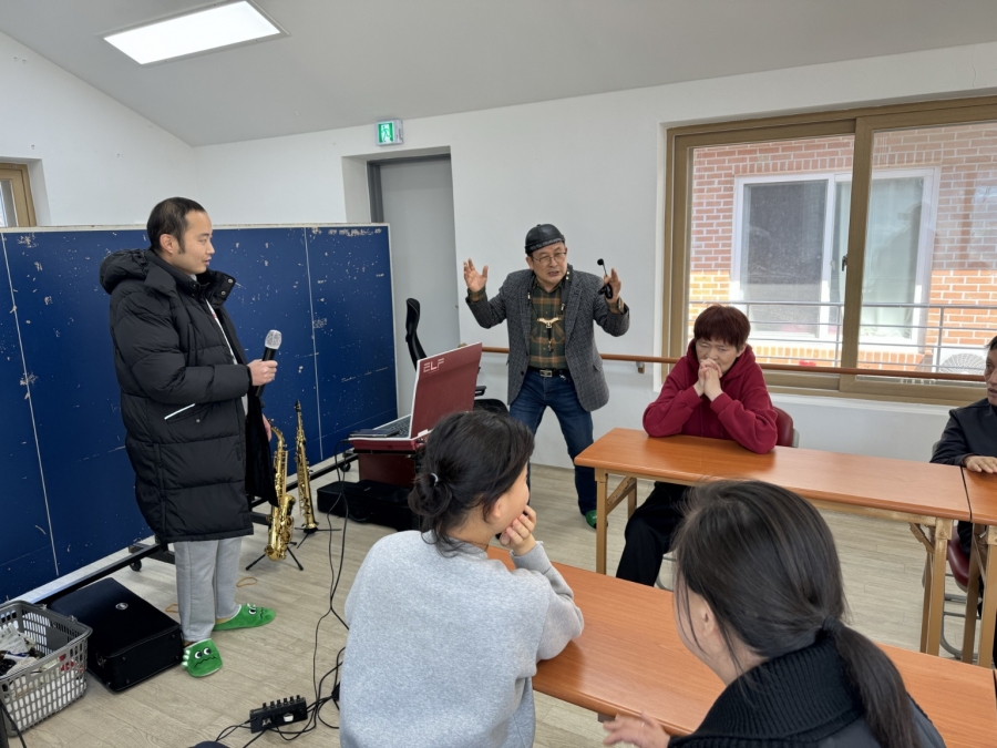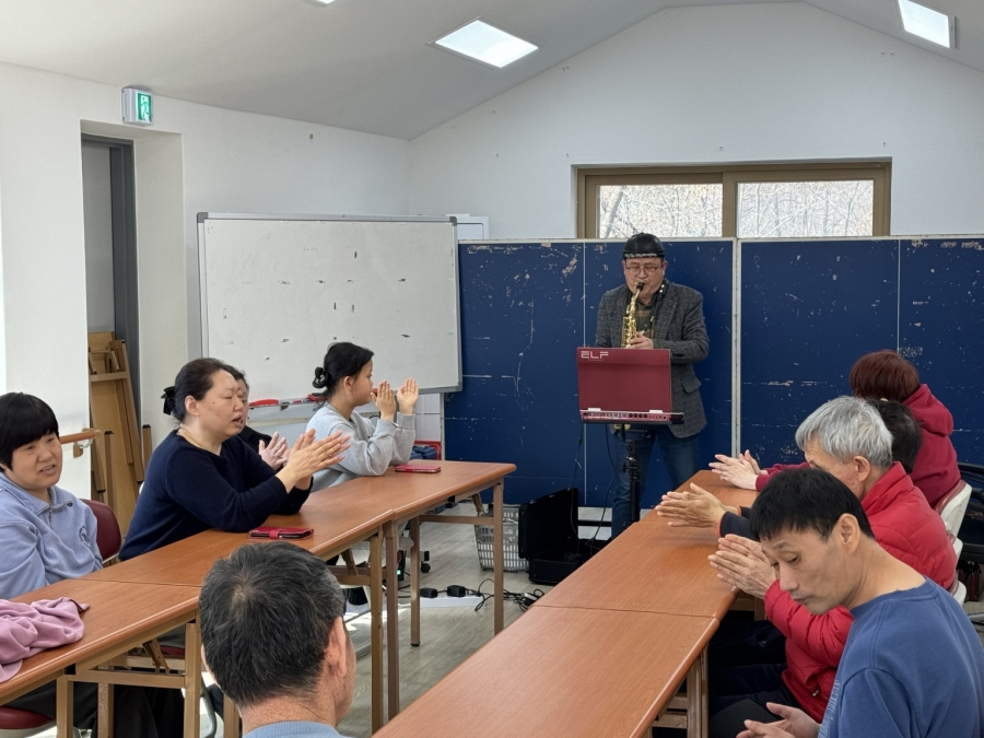 추교일 선생님께서 방문해주셔서 색소폰 연주와 함께 웃음치료를 진행하였습니다.