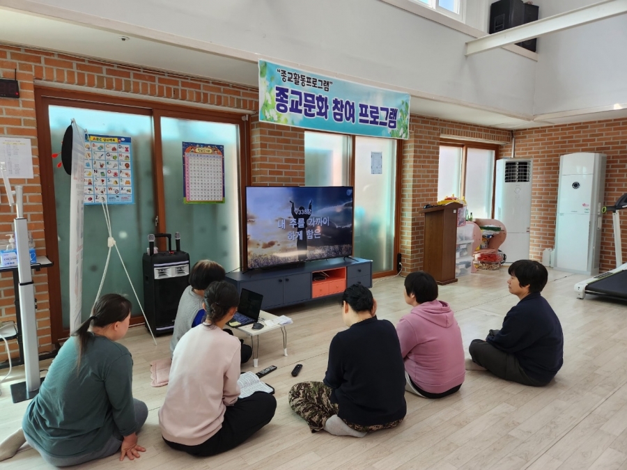 다목적실에 모여 입주자님들과 종교문화 참여 프로그램을 진행하였습니다.