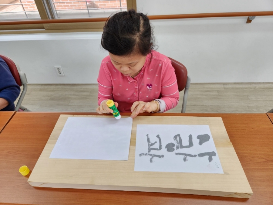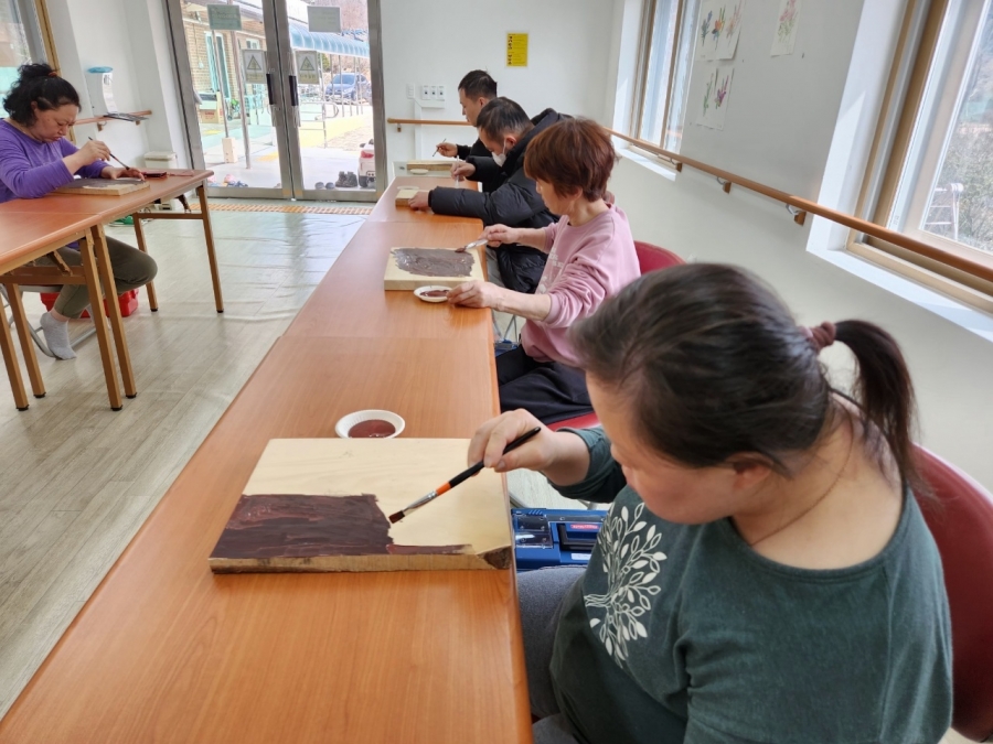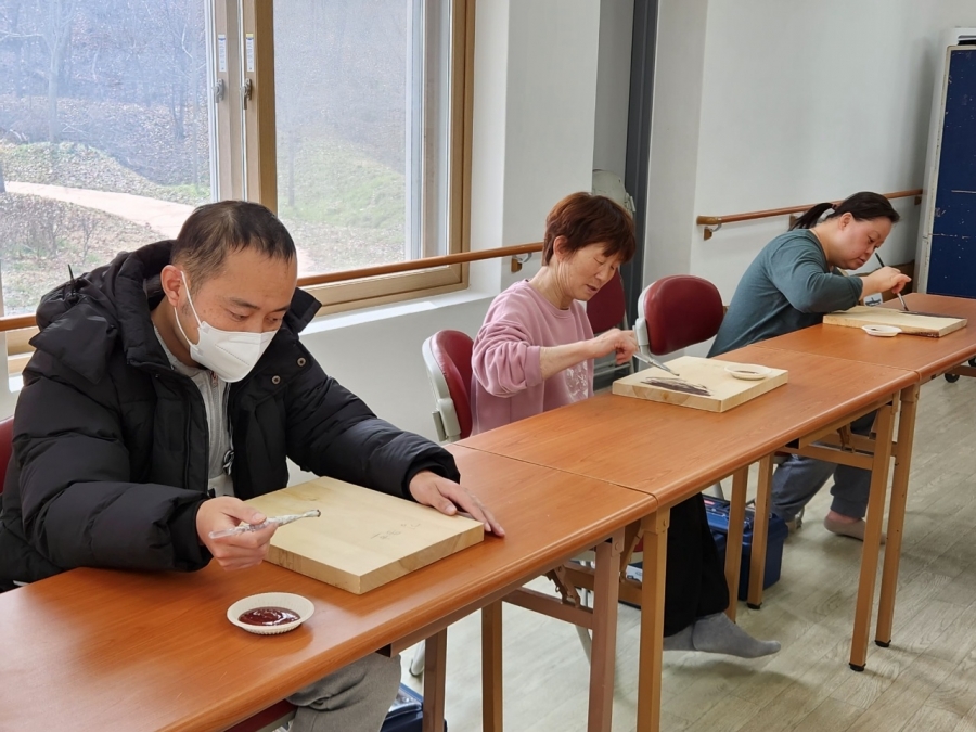 체력단련실에서 서각 작품을 만드는 시간을 가졌습니다.