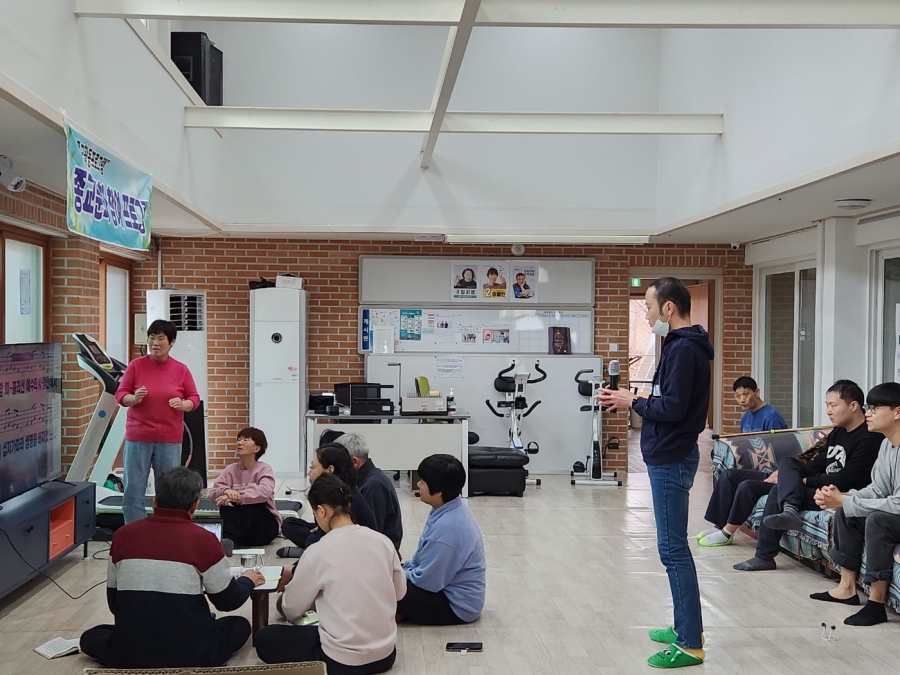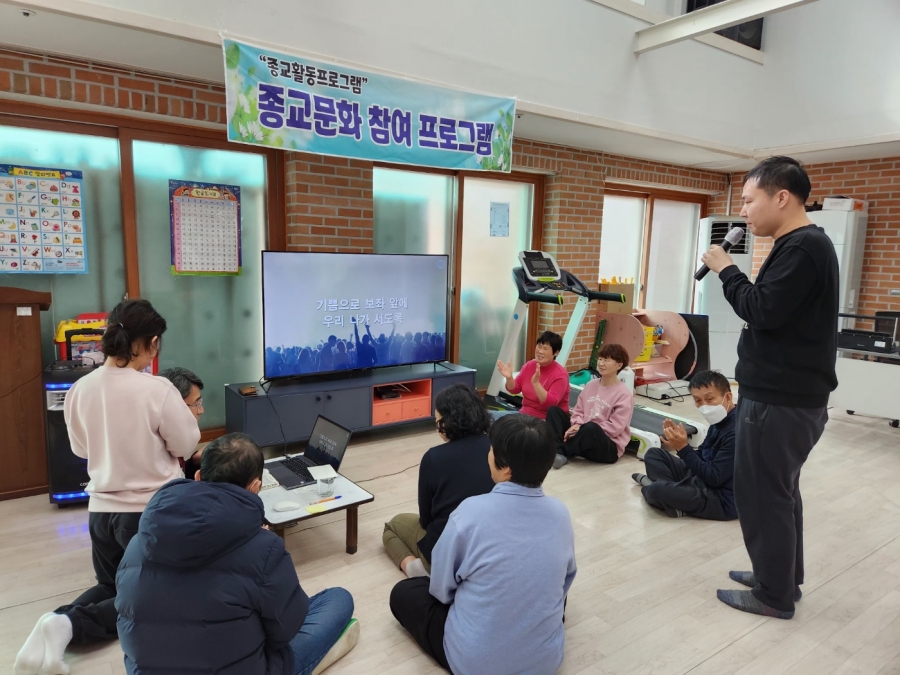 원장님과 함께 찬송가를 부르며 예배를 진행하였습니다.