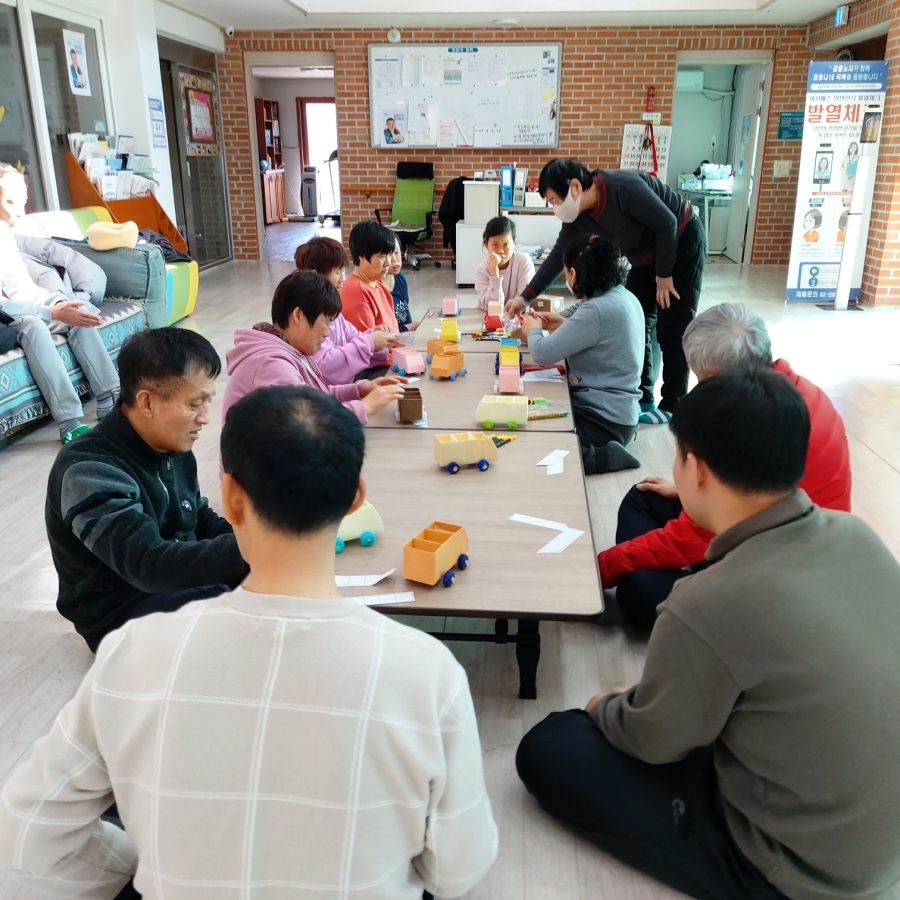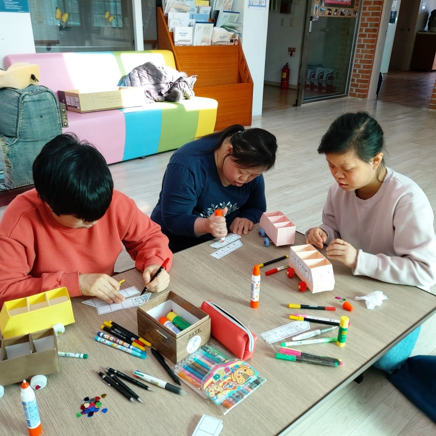 사모님께서 입주자님들과 미술활동을 하시기 위해 밀알의집에 오셨습니다.
