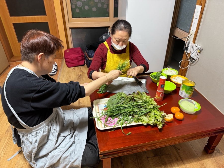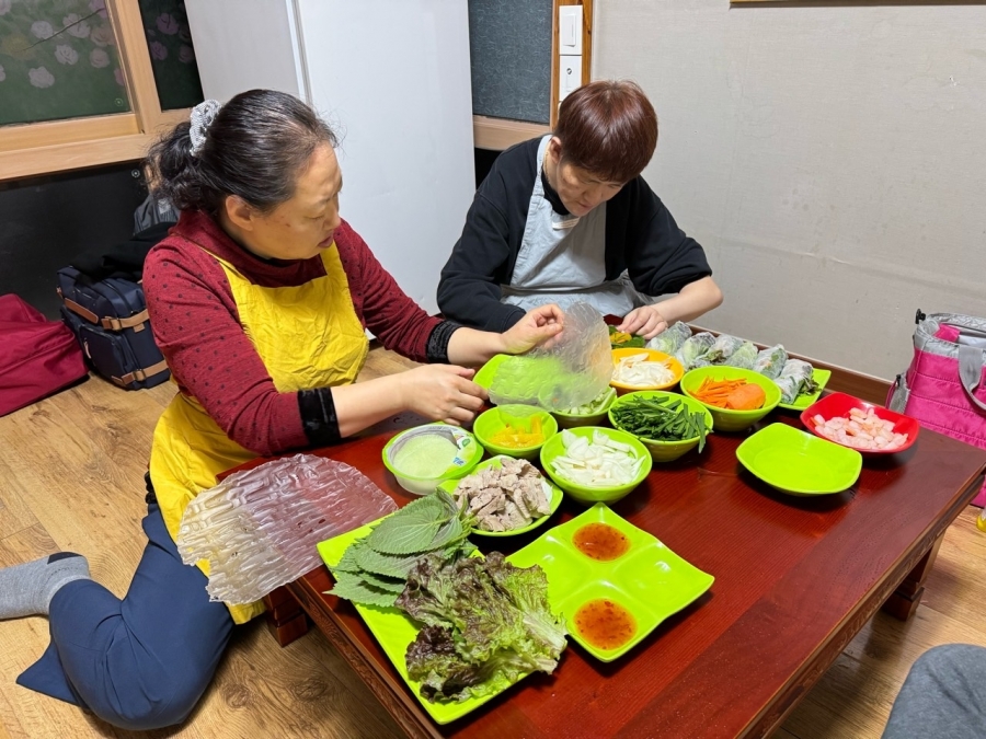 만수산 자연휴양림에서 가정체험 학습을 진행하여 입주자님이 직접 월남쌈을 만들었습니다.
