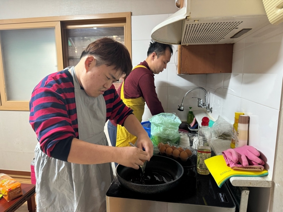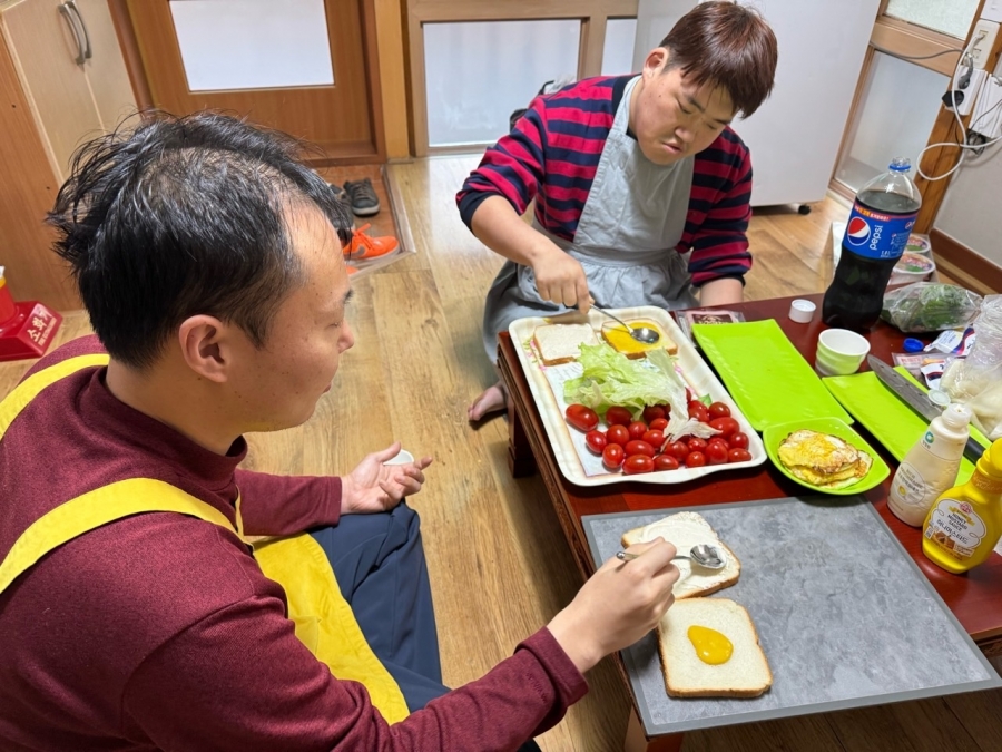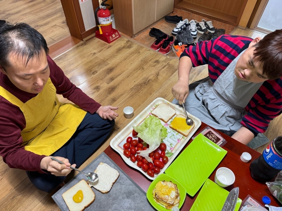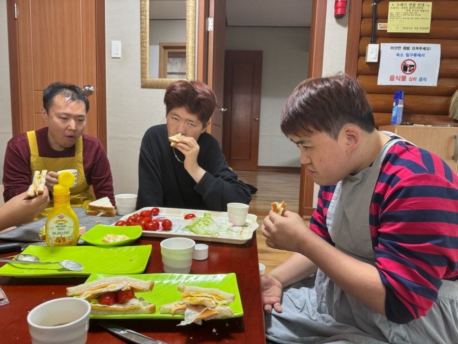 만수산 자연휴양림에서 가정체험 학습을 진행하여 입주자님이 직접 샌드위치를 만들었습니다.