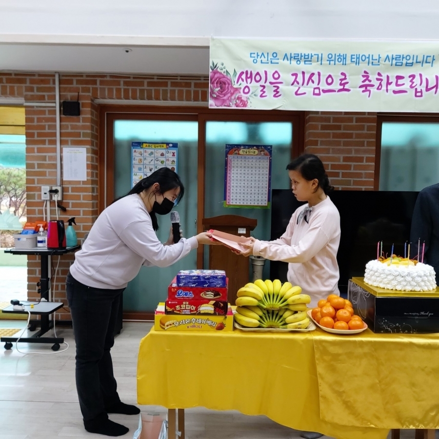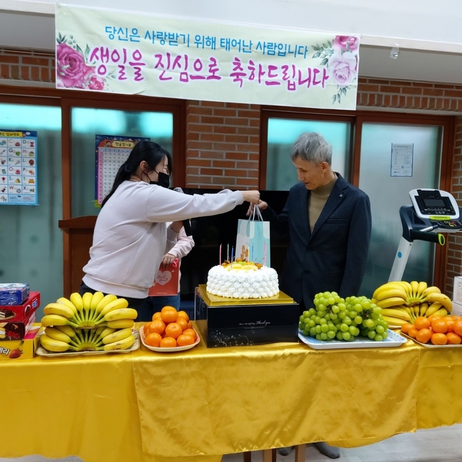 조**, 이** 님의 생일을 맞아 입주자님들과 함께 생일잔치를 하게 되었습니다.