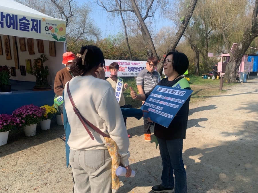 부여국화축제에서 입주자님들과 장애인식개선 프로그램을 진행하였습니다.