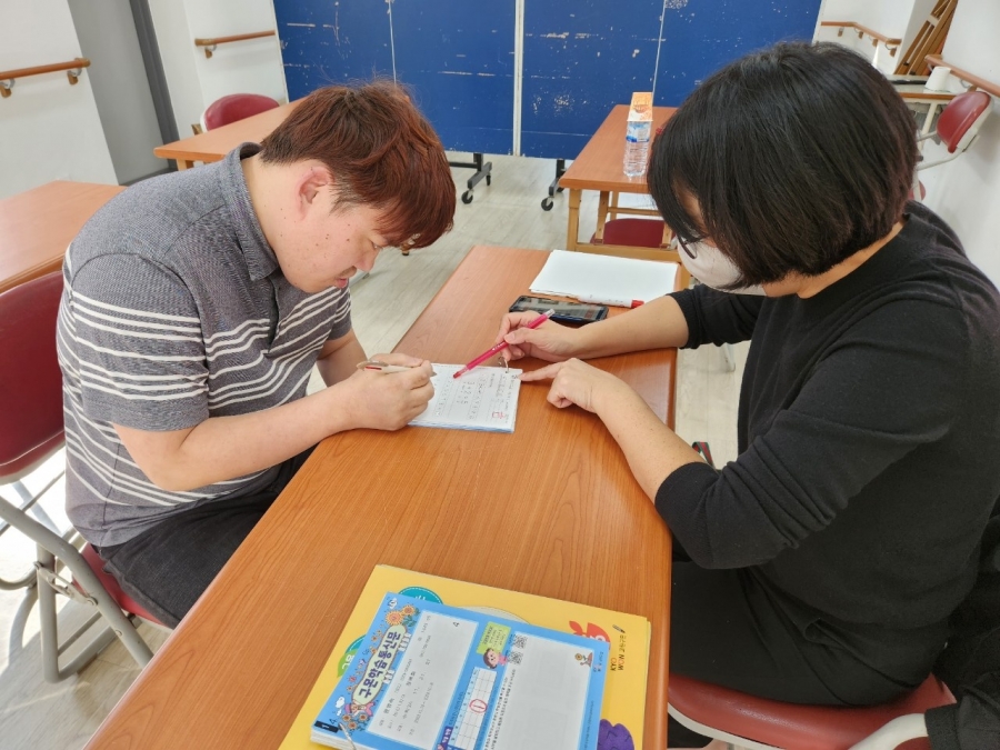 입주자님들께서 구몬학습 선생님과 함께 구몬학습지를 푸셨습니다.