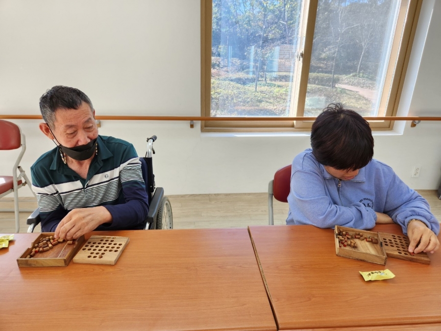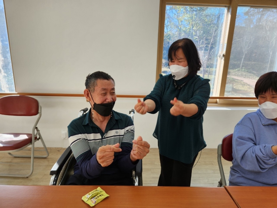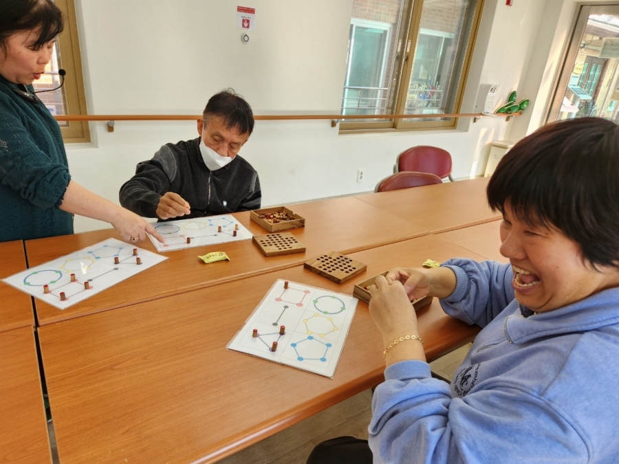 체력단련실에서 간단한 체조와 함께 인지가 좋아지는 게임을 재밌게 즐기셨습니다.