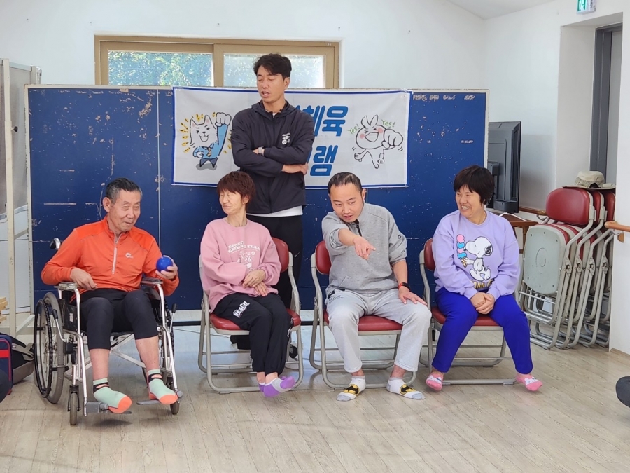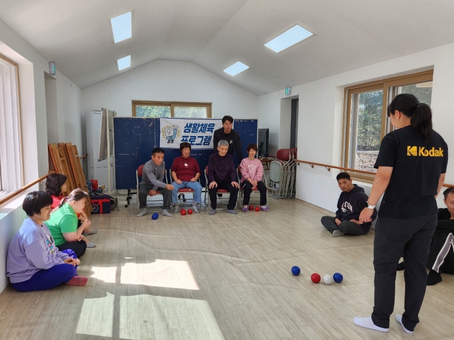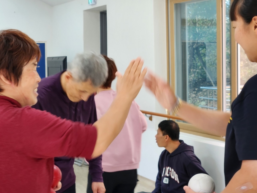 흰공에 가까이 붙어있도록 공을 던지는 보치아 게임을 진행하였습니다.