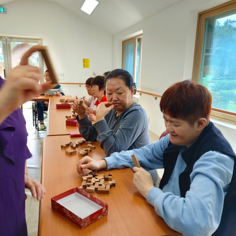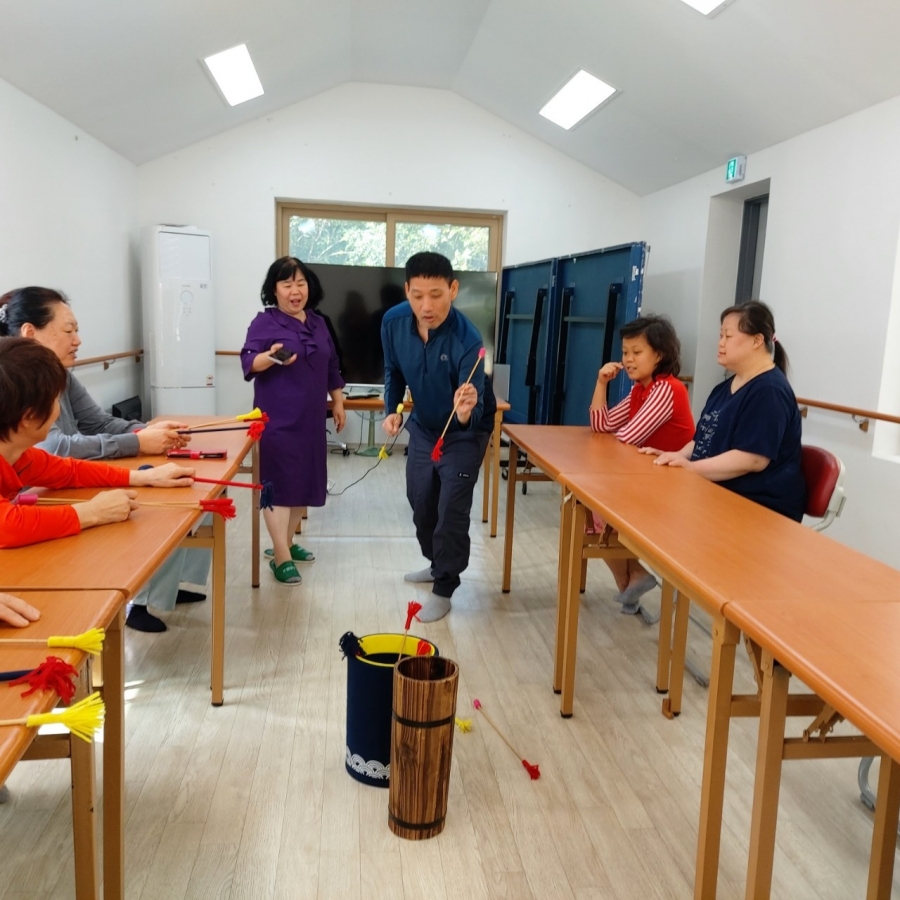 다목적실에 모여 싱글벙글 인지놀이를 진행하였습니다. 블록놀이와 투호놀이를 진행하였습니다.