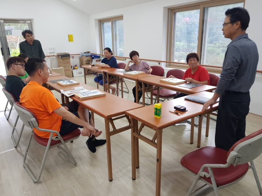 체력단련실에서 서각 프로그램을 진행하였습니다.