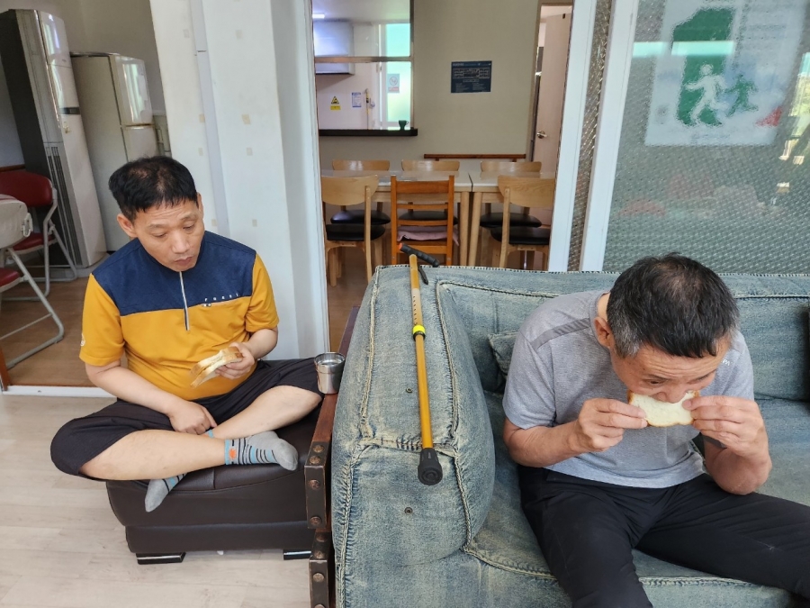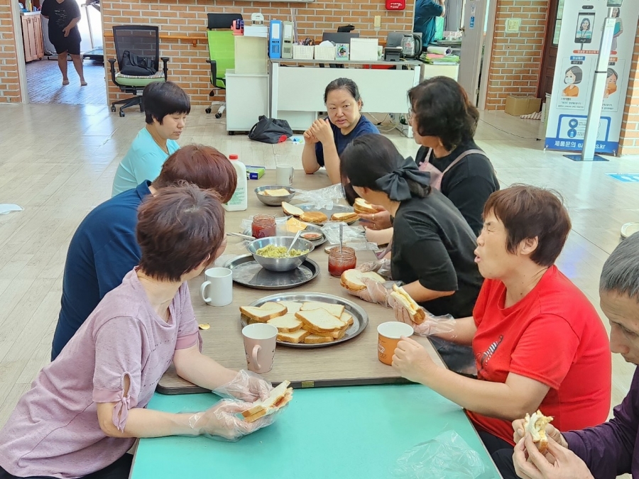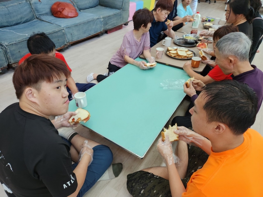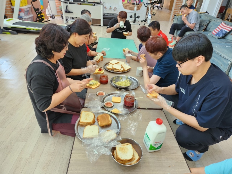 빵위에 고구마샐러드, 치즈와 딸기잼을 듬뿍 얹은 샌드위치를 입주자님들의 특별간식으로 제공되었습니다.