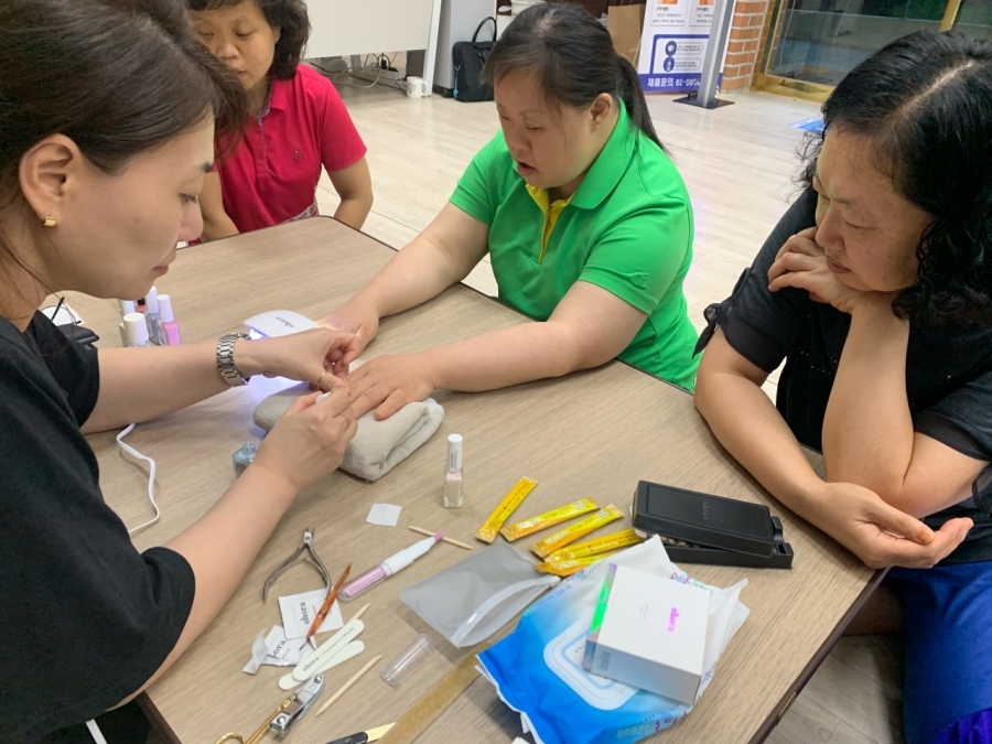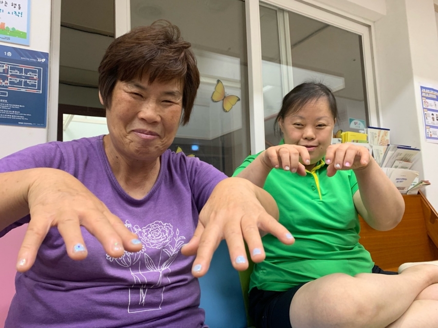밀알의집에 채연살롱이 오픈했습니다~ 밋밋했던 손톱에 예쁜 매니큐어를 발라 잘 건조시키니