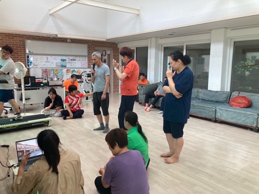 다목적실에서 입주자분들 모두 노래방에 참여하여 노래를 부르셨습니다.