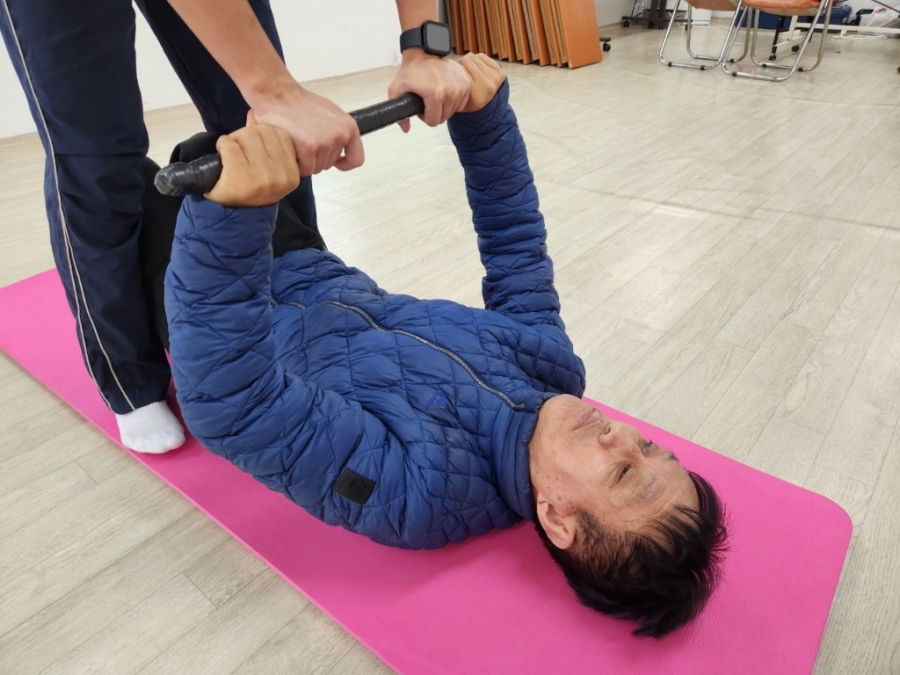 전** 님은 전신 운동을 통해 근력을 강화하는 재활치료를 받고 계시고,