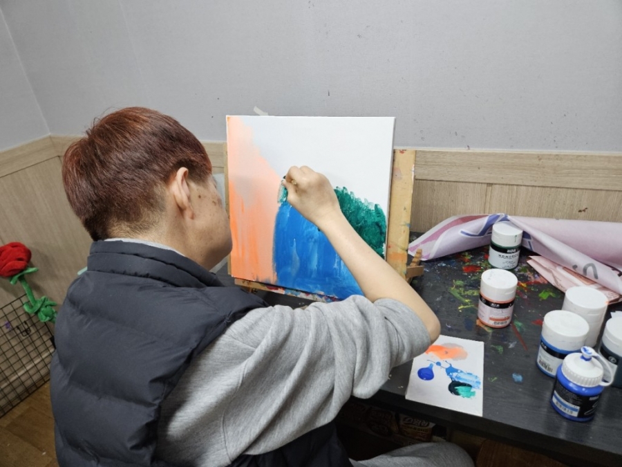 어떤 색을 선택할지 한참을 고민하시던 정**, 윤**, 천** 님은 작품을 완성하기 위해 끝까지 집중하는 모습을 보여주셨습니다.