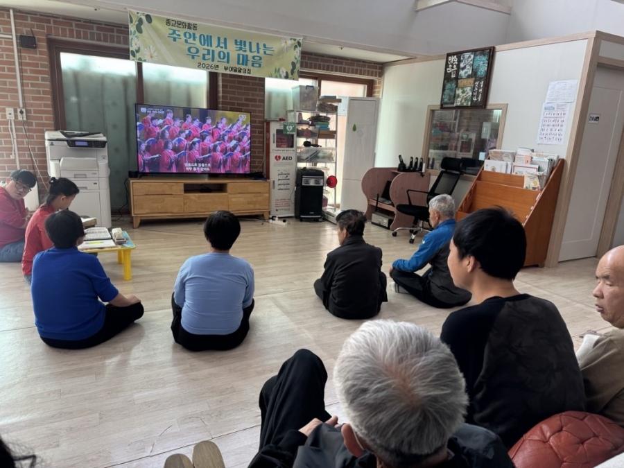 매주 일요일, 예배 영상을 시청하며 종교활동을 진행하였습니다.