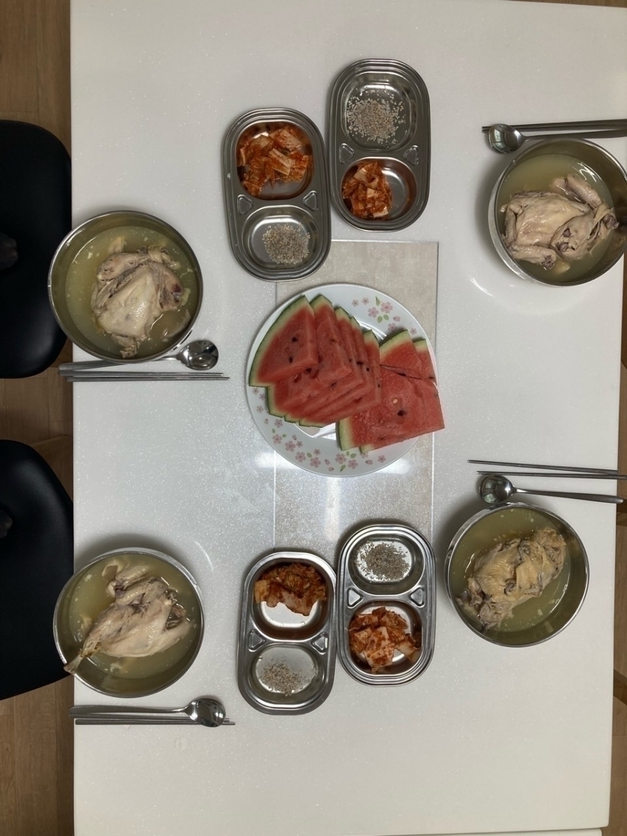 23.07.12 초복을 맞이하여 삼계탕과 수박을 제공해 드렸습니다. 입주자님들께서 아주 맛있게 드셨습니다.