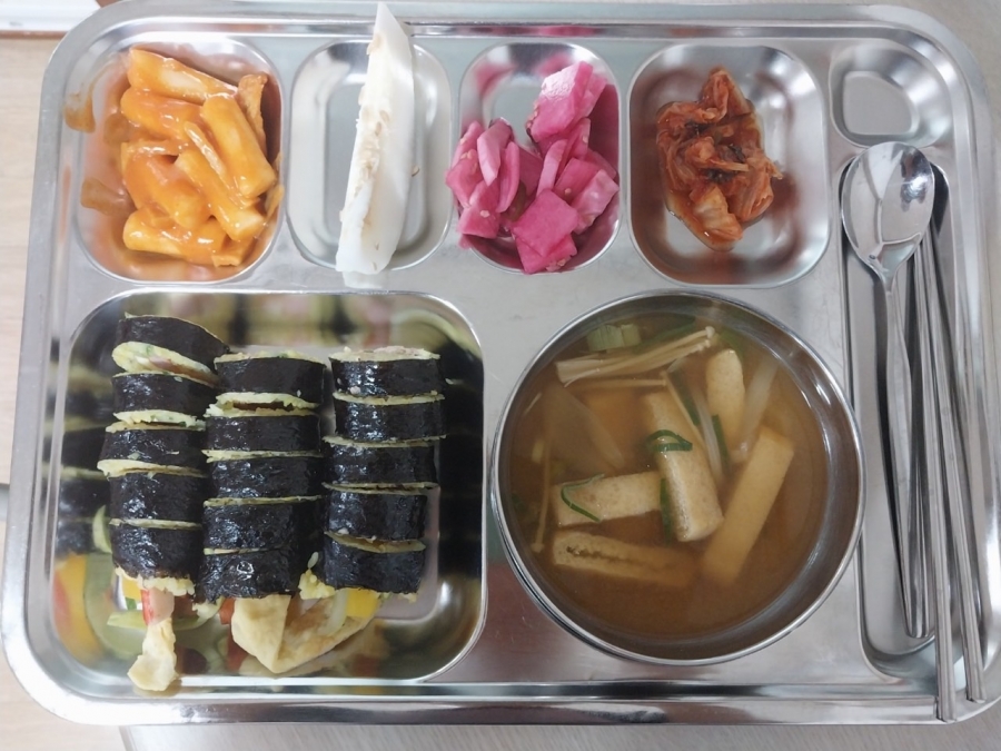 오늘 점심식사로 나온 특별메뉴, 김밥과 떡볶이 입니다.