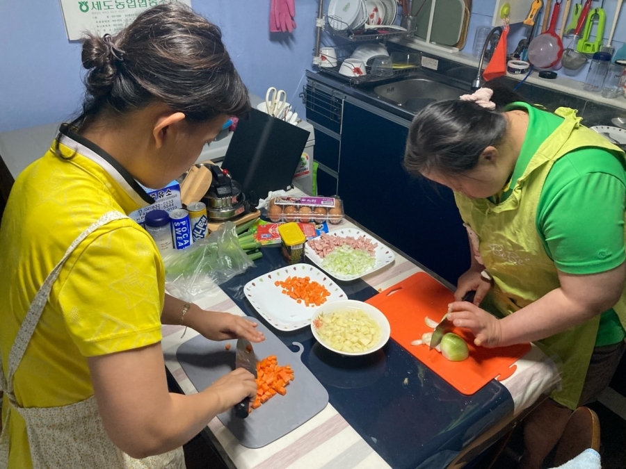23.06.21 조*미 님, 윤*숙님과 함께 햄볶음밥과 계란국을 직접 만들어보는 시간을 가졌습니다.