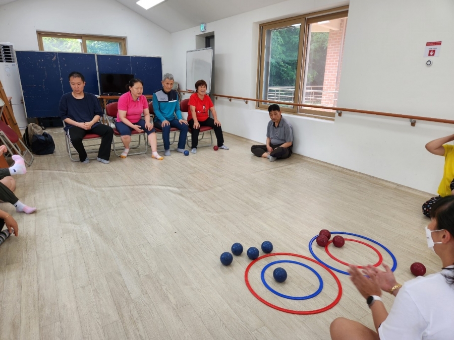 23.07.03 장애인체육회 강사님께서 원내 방문하여 생활체육 보치아를 실시했습니다.