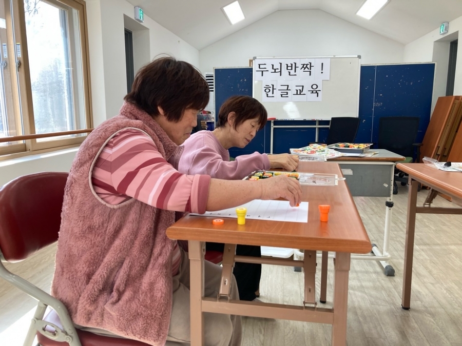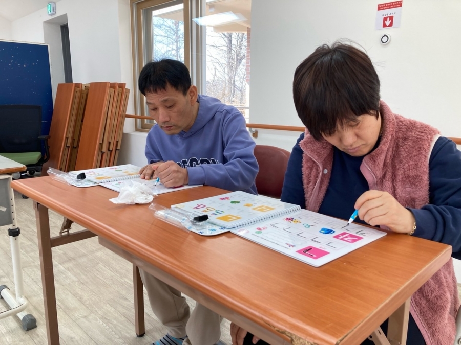 23.03.06 한글을 모르시는 입주자들을 대상으로 스템프를 활용하여 한글교육을 실시했습니다.
