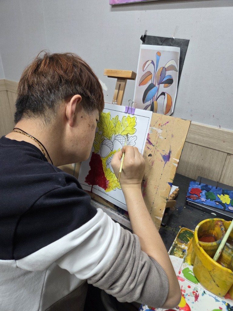 다양한 미술 기법을 익히며, 여러 가지 방법으로 그림을 그리는 재미도 느끼고 계십니다.