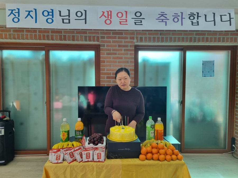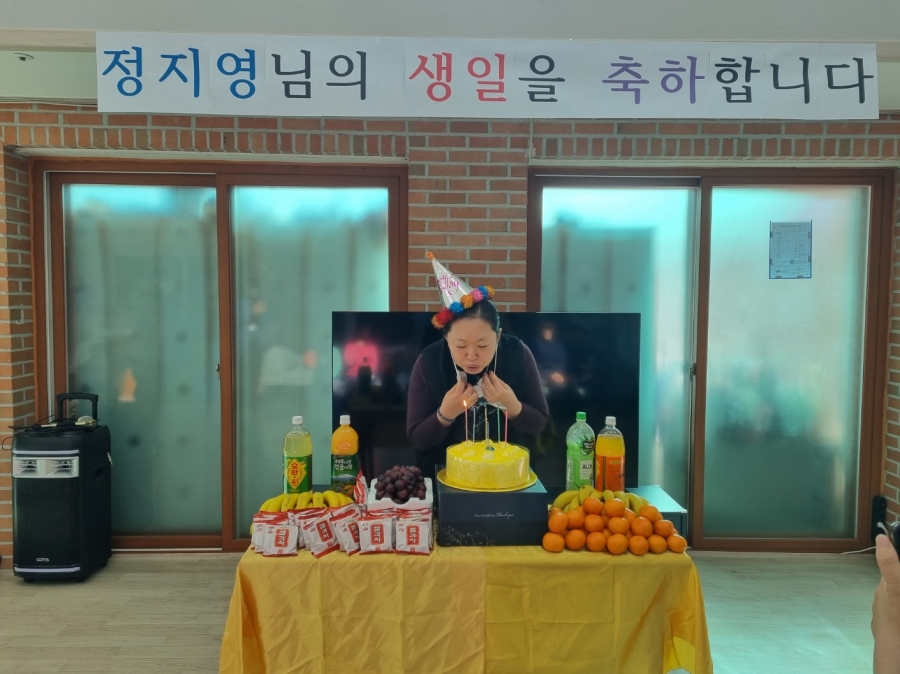 23.02.03 정*영 님 생일(23.01.30)을 맞아 욕구에 따라 원내에서 생일잔치를 진행했습니다. 정*영 님 생일 축하드립니다~~