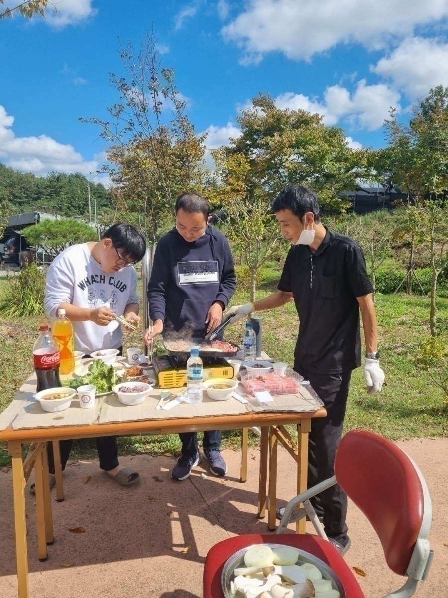 22.10.05 천*식 님, 정*숙 님의 보호자님께서 간식비를 지원해 주셨습니다. 명절에 드실 수 있는 음식들이 많아 잠시 가지고 있다 더  추워지기 전에 원내에서 고기 파티를 하였습니다. 두 보호자님들께서 지원해주신 덕분에 입주자님들께서 행복한 점심식사 할 수 있었습니다. 감사합니다^^