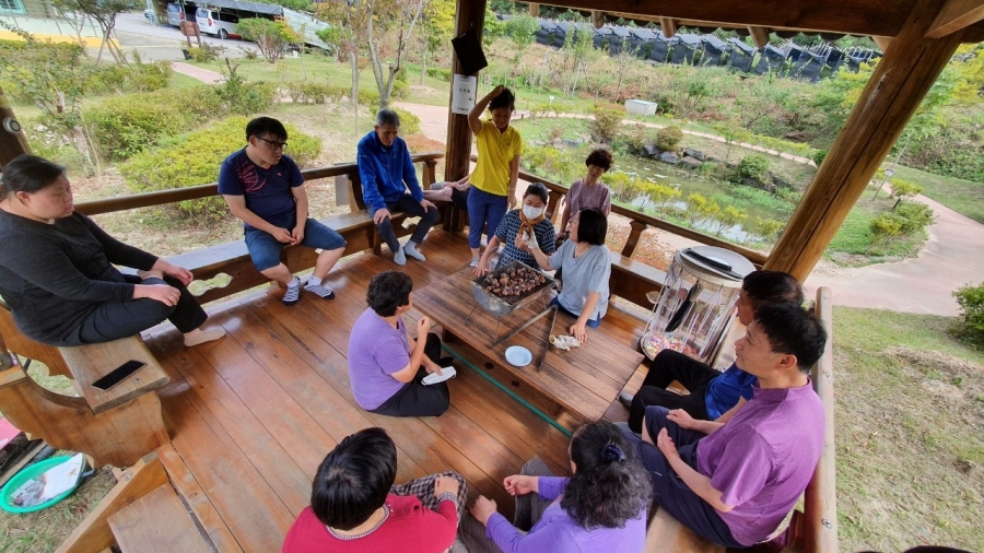 22.09.25 밤나무가 가을을 알리듯 원내 밤나무에서 밤이 계속해서 떨어지고 있어요. 입주자님들께서 주워오신 밤으로 구운밤을 간식으로 먹섰습니다^^