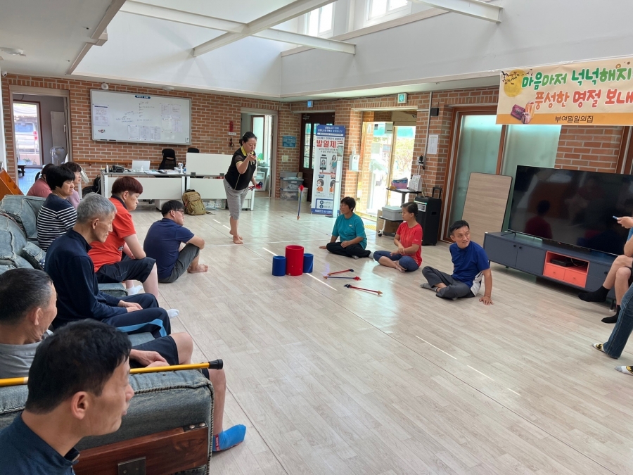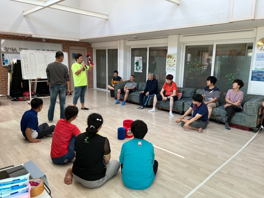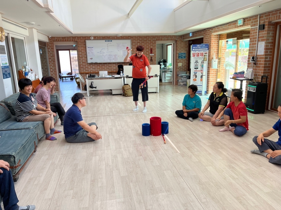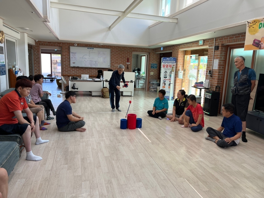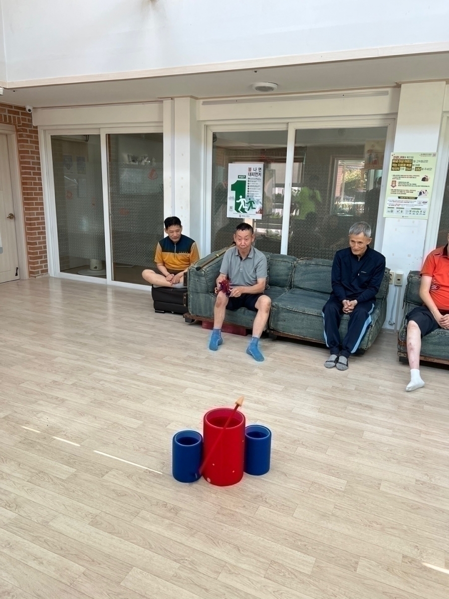 22.09.09 코로나19로 인해 원가족과 함께하지 못하는 입주자님들을 위해 민속놀이 프로그램으로 투호놀이를 하며 명절을 보내고 있습니다. 함께 어울려 게임을 하니 더 즐거워하는 입주자님들의 모습입니다. 행복한 추석 되세요~
