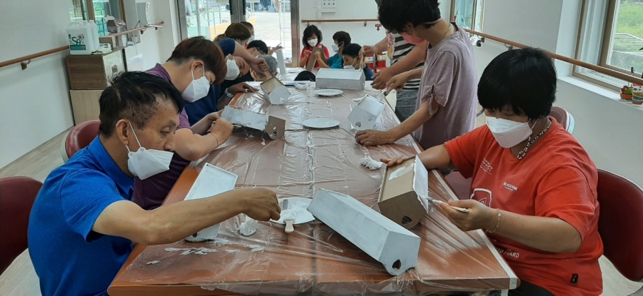 22.07.04 외부강사님의 진행으로 냅킨오픈함을 만들고 있습니다.