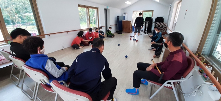 22.05.02 장애인체육회 강사님과 함께하는 생활체육 보치아 게임을 진행했습니다.