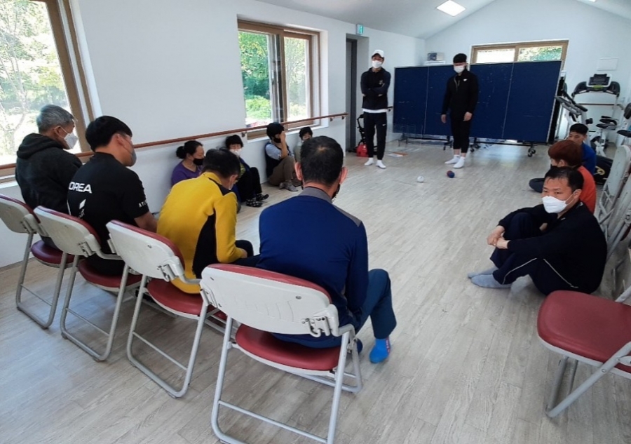 22.05.09 장애인체육회 강사님의 진행으로 생활체육 프로그램을 했습니다.