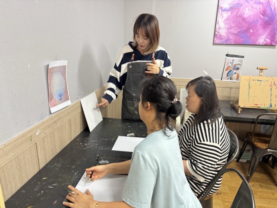 이번주는 조**, 윤** 님만 미술학원에 가셨습니다. (천** 님은 제주도 여행으로 불참하셨습니다.)