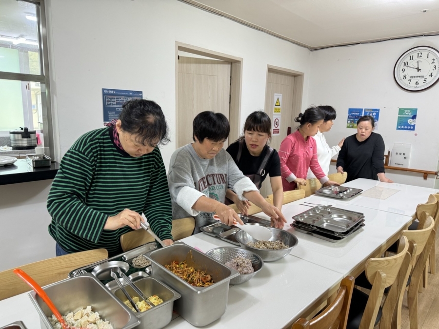 점심식사를 자율배식하였습니다. 입주자님이 원하는 양만큼 반찬을 뜰 수 있도록 지원하였습니다.